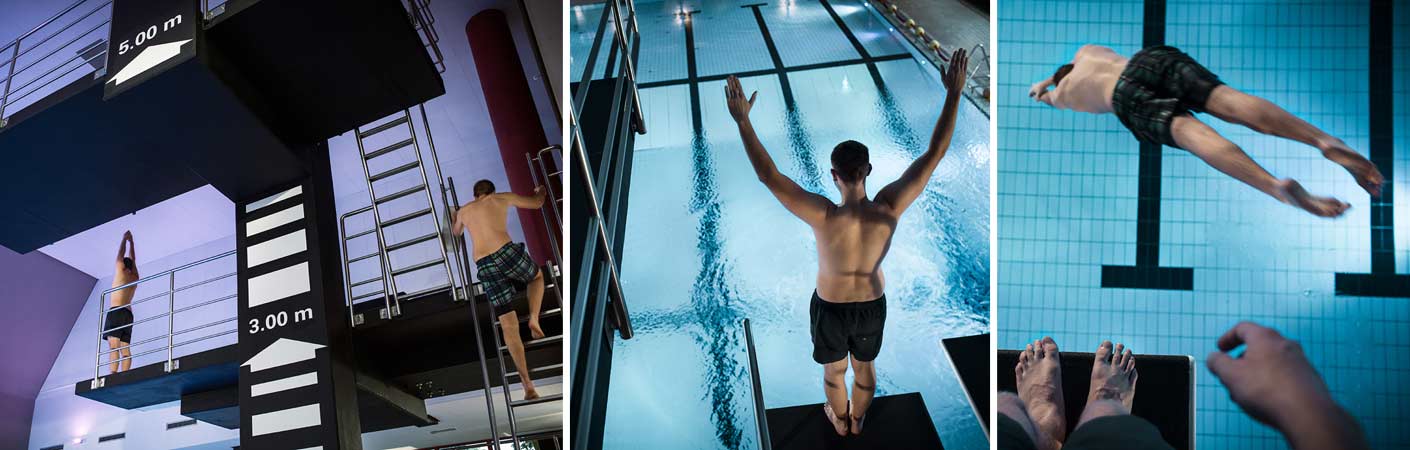 Und zwar mit Spaß und Adrenalinkick, ganz wie du willst, aus 1 Meter, 3 Meter oder 5 Meter Höhe. Besonders Mutige und Erfahrene zeigen den Staunenden unten im Wasser, wer hier das Weichei ist und wer der Held des Tages. Ab geht’s ...
